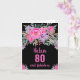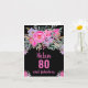 Élégante carte d'anniversaire 80 ans avec un design floral aquarelle rose sur fond noir. Personnalisez avec votre nom et votre texte.