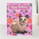 Peinture d'un chat gris argenté, fleurs en arrière-plan. Pour tous les amoureux des chats, Joyeux Anniversaire !