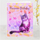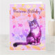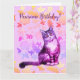 Carte florale de chat gris aux longs poils
