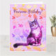 Peinture aquarelle d'un chat aux longs poils, fleurs en arrière-plan, Joyeux Anniversaire !