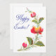 Célébrez Pâques avec cette carte de voeux exquise peinte à la main et dotée d'un design floral traditionnel Petrykivka. L'oeuvre présente un agencement gracieux de fleurs rouges et orangées aux délicats accents marron, de feuilles verts luxuriants et de charmantes fleurs bleues.
