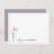 Carte florale personnalisée à la main. Nos cartes à plat personnalisées chic ont une bordure lilas avec une fleur dessinée à la main minimaliste et "une note de" écrit dans un script moderne avec votre propre personnalisation qui suit le fond. Les cartes sont retournées à un arrière - plan lilas correspondant à la bordure avant.