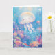 Cette image ludique présente une méduse mignonne au visage souriant entourée de coraux colorés et de petits poissons dans une scène sous-marine. La méduse brille de couleurs pastel douces, et son corps translucide lui donne un aspect magique et éthérée. Les coraux vibrants et les créatures marines animées contribuent à l'atmosphère animée et joyeuse de l'image, créant un monde sous-marin serein mais capricieux.