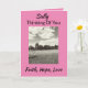 Exprimez vos vœux sincères à une survivante du cancer du sein avec un message d'espoir "foi, espérance, amour". La carte noire et grise avec des touches de rose a une image inspirante d'un enfant faisant voler un cerf-volant par une journée ensoleillée. Le verset positif "pensées roses" à l'intérieur exprimera vos pensées de soutien et de sollicitude.