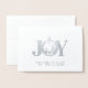 Véritable huile d'argent Cette note nard est présentée en blanc avec un imprimé festif de Noël Joie au monde. Customisez cette carte ou achetez comme indiqué. Impression sous licence