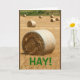 Une scène rurale de route de campagne, complète avec sept balles de foin rondes d'or, est le sujet de mon "FOIN ! Comment vous étés ?" carte de voeux.