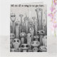 This card features an illustration of a group of sad aliens and a message above. On the inside is a message. The text on the front and inside is editable, so go ahead and change the words as well as the font style, size and colour. The background colours on all sides can be changed, too.