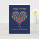 Une jolie carte d'anniversaire pour un partenaire, avec un motif floral en forme de coeur sur un arrière - plan bleu profond, inspiré de l'art populaire d'Europe de l'Est. Une partie de la collection Posh & Painterly 'Folk Heart'.