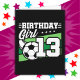 Ce design de fête d'anniversaire de football est parfait pour une fête d'anniversaire de 13 ans pour filles sur le thème du football pour célébrer leur 13e anniversaire! Idéal pour les enfants qui aiment jouer au football, regarder le football ou les futurs footballeurs stars ! Dispose d'un ballon de football sur un terrain de football graphique avec le numéro 13 pour le 13e anniversaire d'une fille.
