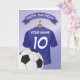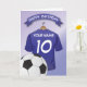 Des cartes d'anniversaire personnalisées pour enfants soccer avec un arrière - plan décoloré bleu clair et un maillot de football bleu royal que vous pouvez personnaliser avec le nom et l'âge des enfants, et un ballon en bas. Cette carte d'anniversaire de football ravira les enfants d'anniversaire, que ce soit votre fils/fille, neveu/nièce, petit-fils/petite-fille ou ami, littéralement toute personne qui est fou sportif! N'oubliez pas d'ajouter votre message spécial dans la carte !
