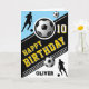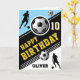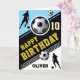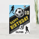Carte d'anniversaire du joueur de football de football moderne. Célébrez en style avec cette carte d'anniversaire au thème du football élégant! Doté d'un jeu de couleurs jaune, bleu et noir, de lettres audacieuses et de graphismes réalistes de base-ball, ce design sportif est parfait pour tous les fans de football. La carte présente des silhouettes de joueurs dynamiques, un ballon de football 3D et des détails de bande. Que ce soit pour une fête d’enfants ou un amoureux du football adulte, ce design haut de gamme et personnalisable est un home run pour toute célébration d’anniversaire !