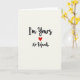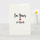 This charming card shares a bold declaration of commitment with warmth and wit. Set on a soft off-white background, the message “I’m Yours” appears in flowing black script, instantly drawing the eye with its graceful style. Just below, a bright red heart adds a strong note of passion and emotion. The phrase “No Refunds,” written in the same elegant lettering, brings a lighthearted twist that makes the message feel personal and confident. The balance of ivory, black, and vivid red creates a striking yet inviting look. With its centered layout and thoughtful contrast, this card expresses lasting love in a clever and heartfelt way, making it perfect for Valentine’s Day or any moment you want to say your love is here to stay. ❤️💌🍫