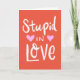 Parfaite pour la Saint-Valentin, les anniversaires ou simplement parce que vous avez attrapé le béguin et que vous êtes prêt à l'admettre, cette carte de vœux indique « fou amoureux » sur le devant avec des zones de texte de message et de nom modifiables à l'intérieur. Un rouge corail chaud fait ressortir les lettres blanches écrites à la main et les cœurs roses illustrés, mais peut être changé en n'importe quelle couleur que vous souhaitez avec l'outil de conception.