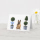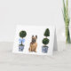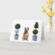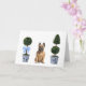 Ces cartes de voeux comportent un portrait aquarelle d'un bulldog français assis entre deux topiaires de style chinoiserie.
