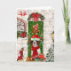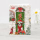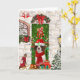 French Springer Spaniel Dog Noël assis à l'extérieur de la maison décorée avec la couronne de Noël, le sapin de Noël est une idée cadeau de Noël parfaite pour les amoureux de les chiens.