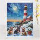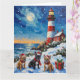 Bring charming, bat-eared cuteness to your holiday season with this adorable French Bulldog Christmas design! This magical scene features three cute, expressive French Bulldogs (Frenchies) sitting contentedly at the base of a tall red-and-white lighthouse, which stands majestically on a snowy coastal cliff. The lighthouse is beautifully adorned with glowing Christmas lights and fragrant garlands. The dogs wear festive Santa hats and cozy scarves, surrounded by colorful wrapped gifts and cheerful holly branches. The ocean waves sparkle in the moonlight while soft snowflakes drift gently in the air, creating a truly magical winter holiday atmosphere. This design is a perfect Christmas gift for any French Bulldog owner, dog lover, or admirer of festive and beloved companion dog art, capturing the serene joy of the season.