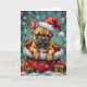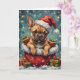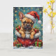 A festive and fun Christmas illustration featuring a single French Bulldog sitting inside Santa’s bag full of presents while wearing a Santa hat. With glowing fairy lights, warm cozy lighting, and a festive red and green color palette, this design is perfect for dog lovers, holiday enthusiasts, and anyone who enjoys cheerful holiday artwork. Ideal for Christmas gifts, apparel, mugs, cards, and seasonal home decor.