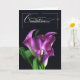 Soft lavender purple hues on beautiful lilies create a gorgeous sympathy greeting card in the French language with a message of Sincere Condolences/Sympathy and inside reads; "You are in my thoughts and in my heart."
