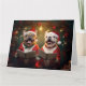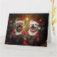 Dans cette fascinante oeuvre numérique amusante, un groupe de Bulldogs français en covoiturage occupe le devant de la scène entourée d'une scène festive de Noël.