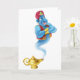 Illustration of a friendly Jinn or genie coming out of a gold magic oil lamp like the one in the Aladdin story