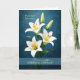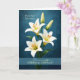 This elegant religious design features graceful white lilies arranged against a rich blue background that highlights the delicate petals and warm golden centers of the flowers. The classic lilies symbolize purity, renewal, and new life, making them especially meaningful for celebrating a person's entrance into the Catholic Church through the RCIA or OCIA journey. The message from a sponsor expresses encouragement and joy as the recipient completes this important step in their faith life. The refined floral artwork and peaceful color palette create a thoughtful and uplifting greeting for welcoming someone into the Catholic Church.