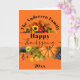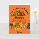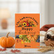 Cette carte de Thanksgiving personnalisable présente un fond orange vibrant mettant en valeur deux riches scènes de récolte. La bordure supérieure présente des tournesols et un feuillage d'automne encadrant le nom de votre famille. La partie inférieure comporte une citrouille orange, des raisins violets et des pommes vertes. La phrase "Joyeux Thanksgiving" est élégamment écrite au milieu, ce qui en fait un message d'automne audacieux et magnifique.