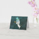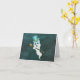Cet carte pour notes a un drôle de fantôme blanc flottant dans un ciel noir brumeux, avec de minuscules étoiles blanches portant un chapeau bleu vert avec un ruban doré tenant une belle canne noire avec un crâne doré.