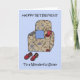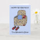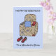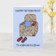 Une carte mignonne pour souhaiter une retraite très heureuse à toute soeur aimée. Un fauteuil en caricature recouvert d'un motif chintz, avec chaussons, télécommande et tasse.