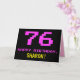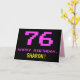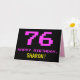 La façade de cette carte de voeux amusante, nauséabonde et geek d'anniversaire comporte un grand nombre de "76" et le message "HAPPY BANTHDAY", couleur rose, ainsi qu'un nom de destinataire personnalisé jaune et gras. Le texte s'inspire de celui des classiques jeux vidéo et de jeux vidéo de style 8 bits des années 1970 et 1980, et le arrière - plan est noir. L'intérieur a un message d'anniversaire personnalisé, ou peut-être pourrait-il être effacé et laissé vide si un message doit être écrit à la main à la place. Une carte d’anniversaire personnalisable comme celle-ci pourrait être une façon amusante de célébrer le soixante-seizième anniversaire de quelqu’un. [~Z0000478]
