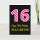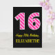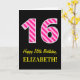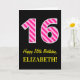 Carte Fun rose rayé "16"; Joyeux 16e anniversaire; Nom