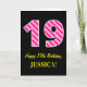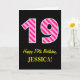 Carte Fun rose rayé "19"; Joyeux 19e anniversaire; Nom