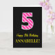 Carte Fun rose rayé "5"; Joyeux 5e anniversaire; Nom