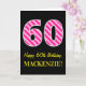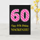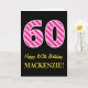 Carte Fun rose rayé "60"; Joyeux 60e anniversaire; Nom