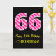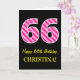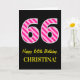 Carte Fun rose rayé "66"; Joyeux 66e anniversaire; Nom