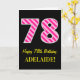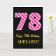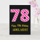 Carte Fun rose rayé "78"; Joyeux 78e anniversaire; Nom