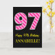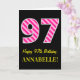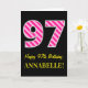 Carte Fun rose rayé "97"; Joyeux 97e anniversaire; Nom