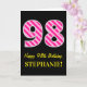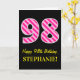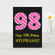 Carte Fun rose rayé "98"; Joyeux 98e anniversaire; Nom