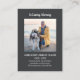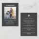 Une photo de votre être aimé est présentée au centre de cette carte de prière funéraire. In Loving Memory est écrit ci-dessus. Le nom de la personne décédée, les dates de vie et un bref hommage personnalisé sont placés ci-dessous. Une croix est à l'arrière. Il y a de l'espace ci-dessous pour une prière ou un psaume favoris.