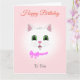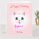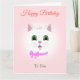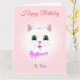Drôle joli joyeux et festif chat blanc visage sur la carte d'anniversaire rose clair. Le texte peut être personnalisé pour un parent, un ami, une soeur, un enseignant, et plus.