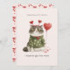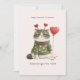 This funny Valentine card features an unimpressed cat bundled up in a cozy heart-patterned sweater, holding a Valentine balloon with very little enthusiasm. It’s the perfect card for couples who prefer humor over overly sentimental messages and appreciate a more realistic take on romance.