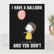 J'AI UN BALLON ET VOUS N'EN AVEZ PAS. CARTE D'ANNIVERSAIRE MESSAGE AMUSANT À L'INTÉRIEUR.