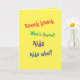 Cette drôle de carte d'anniversaire tardive a une blague de frappe qui commence, Knock frappe. Qui est là ? Aida. Aida qui ? — Vous devrez lire l'intérieur pour voir ce qu'il dit d'autre. — Les lettres sont ludiques, amusantes et colorées, sur un arrière - plan jaune. Vous pouvez les changer si vous voulez. — À l'intérieur de la carte de voeux dit Joyeux anniversaire tardif. Vous pouvez ajouter votre propre message personnalisé avec l'outil de texte. Appuyez sur le bouton personnaliser ou personnalisez pour ajouter plus de mots. — Voyez plus d'humour voitures retardées et d'anniversaire au crayon d'Alina.