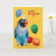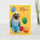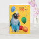 Balloons and confetti create a festive birthday card for the Lovebird fancier, featuring a blue, white and black parrot with a great message for someone's birthday.