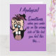 Say sorry with a smile! This quirky cartoon card features a funny graphic of a confused-looking man in a tiny black hat. Its playful design adds humor to your apology, making it easier to break the ice and brighten their day.