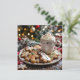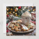 A sweet Christmas card with some holiday humor on the back. You don't have to count calories in December! A festive illustration of Christmas cookies, gingerbread cookies, hot cocoa with whipped cream and a festive background.