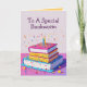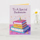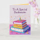 Une carte amusante pour les vers de livres, qui aiment lire. Le design à l'avant est un gâteau en couches en forme de livres, avec des bougies sur le dessus et des confettis volant autour. L'intérieur du texte éditable dit, "J'espère que vous avez mis votre livre assez longtemps pour lire ma carte. Si vous ne le faites pas, vous ne connaîtrez jamais l'argent que j'ai mis dans cette carte... Joyeux anniversaire". C'est une carte de voeux d'anniversaire colorée en rose, orange, jaune, bleu et violet.