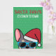 Si vous connaissez quelqu'un qui aime les bulldogs français et qui a un bon sens de l'humour, cette drôle de carte de Noël française est idéale pour leur envoyer pendant les vacances festives. Le dessin présente une illustration de dessin animé d'un bulldog français couleur lilas et bronzé portant un chapeau de Père Noël rouge et des lunettes de soleil avec le libellé "Père Noël Paws est venu’ to town" écrit sur le devant. Le texte à l'intérieur dit "Je vous souhaite un Noël pawsome" mais peut être changé à votre goût. Ce design est également disponible avec différents bulldogs français colorés.
