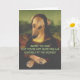 Photo de chien amusante d'un chiot brun habillé comme Mona Lisa. Vieux style de maître numérique Mona Lisa peinture chien. Chien en costume robe de bienvenue modèle de carte de voeux.