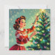 Looking for a funny Christmas card for a friend or family member? Add a little humor into their holiday season with this cute retro mid-century graphics and humor. A woman hanging up Christmas lights on the tree saying, 'May all your Christmas lights work on the first try." Because honestly, we know they won't, right? Inside is some more Christmas humor to make your friend laugh.