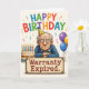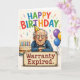 A hilarious and slightly sarcastic Happy Birthday design featuring a grumpy older man wearing a party hat, paired with bold colorful “Happy Birthday” lettering and a vintage-style “Warranty Expired” sign. Surrounded by festive elements like balloons, confetti, and a birthday cake with candles, this design perfectly blends celebration with humor.